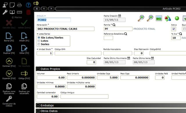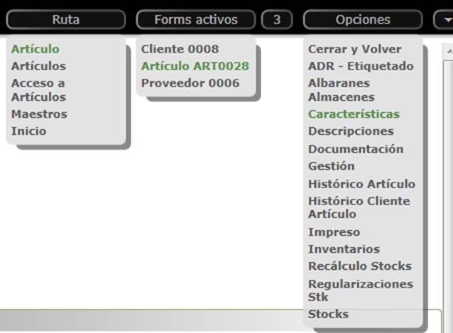 ficha del artículo, podremos acceder a la consulta de stocks, inventarios,
