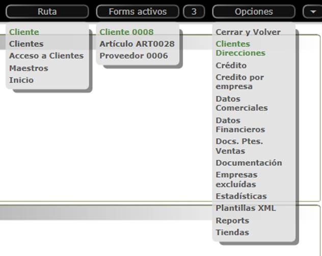 a través de los iconos o los botones de ruta, Forms activos y opciones, existe